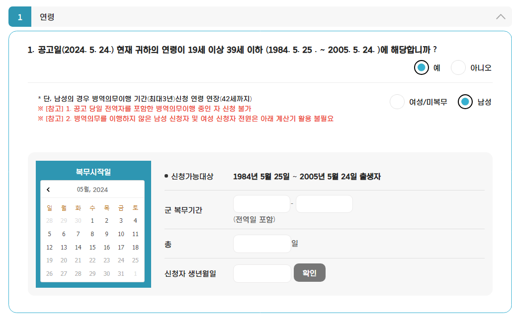 - 병역의무이행자는 병역의무이행 기간 최대 3년까지 신청 연령을 연장 (42세까지 가능)