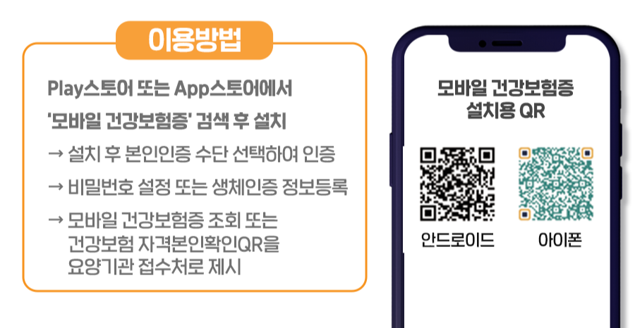 ✔️ 모바일 건강보험증은 국민건강보험공단에서 제공하는 어플을 통해 발급받으실 수 있습니다.