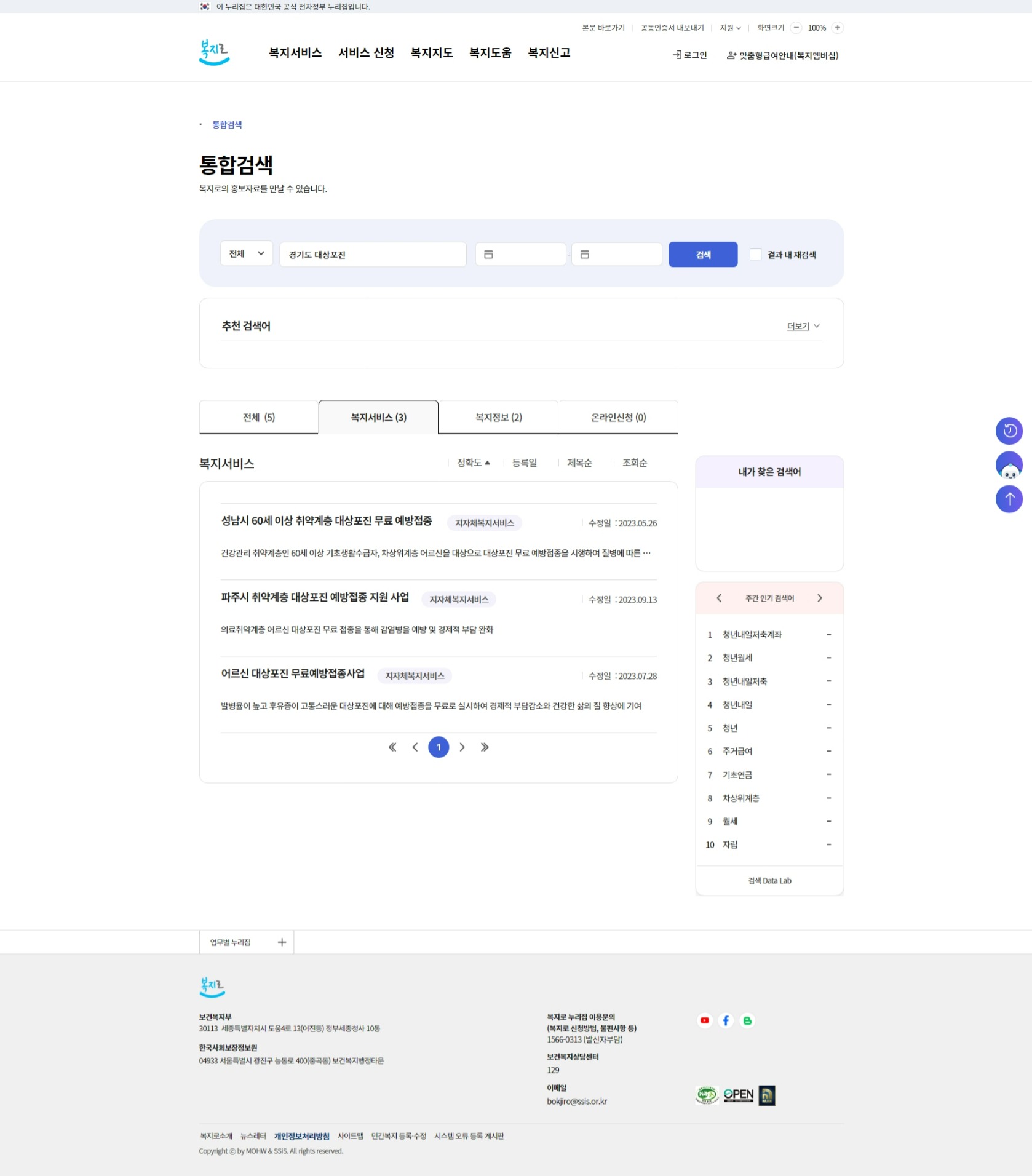 ③ 아래 나타난 결과에서 [복지서비스]를 누릅니다.